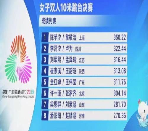 | 北京时间11月6日,第十五届全运会女子双人十米台决赛落下帷幕。上海组合陈芋汐、掌敏洁延续了预赛的完美发挥,以350.22分拔得头筹,收获冠军!四川队的李蕊汐/卢为收获亚军,江苏队刘军熙/孟泽瑞夺得季军。 在上午的预赛中,陈芋汐和掌敏洁就以超第二名将近30分晋级,决赛中两人持续保持住了默契的配合,第一跳就以52.20的高分排名第一。 第一跳 第二跳陈芋汐/掌敏洁稳扎稳打,以52.80分继续领跑。广东队的全红婵、王伟莹在落水时出现小瑕疵,排名从次席跌至第三。 第二跳 第三跳 在难度系数为3.2的第四跳上,上海组合顶住了压力,以82.56分完美诠释了407c,领先了第二名超16分。 第四跳 第五跳 最后一个难度系数为3.2的5253b,陈芋汐和掌敏洁以完美的表现结束了“最后一舞”,最终以350.22的总分夺得冠军!再次祝贺! |