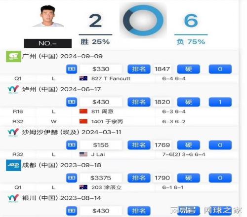 世界单打排名最高仅第1572位的李文夫被处以2万美元罚款(其中1.5万美元暂缓执行)及两年零三个月禁赛,禁赛期至2027年10月30日结束;21岁的张瑾最高排名第1285位,被处以1.5万美元罚款和两年禁赛,将于2027年7月30日解禁。 另一名网球选手——23岁的陆鹏宇则因涉嫌违反《网球反腐败计划》(TACP)同样被严肃处罚。他在今年广州挑战赛资格赛中打出了引人疑虑的悬殊比分——首盘仅得7分、次盘仅得3分,最终“双蛋”告负。