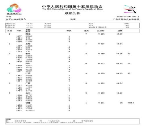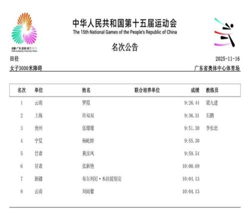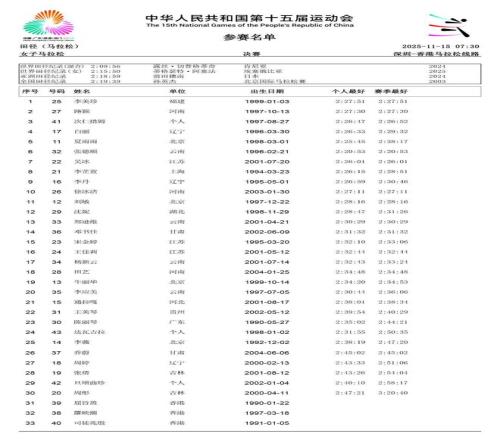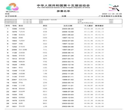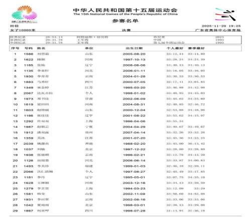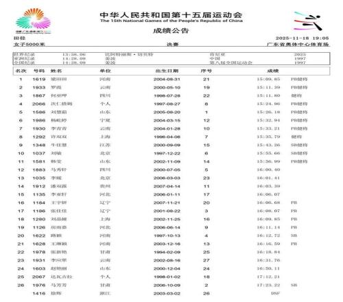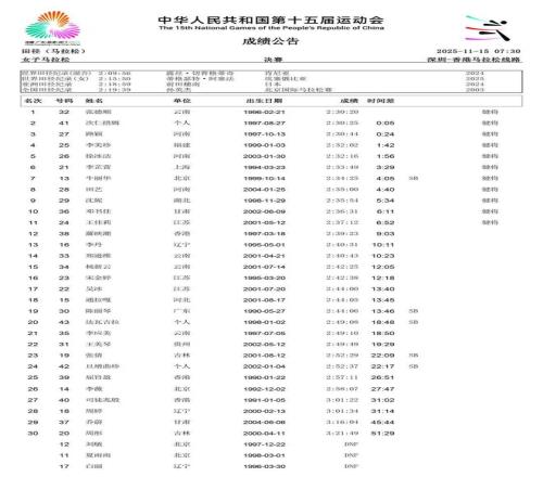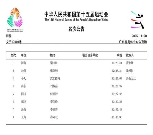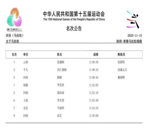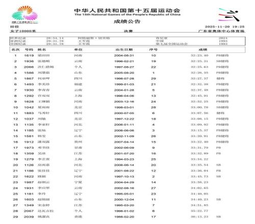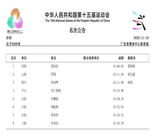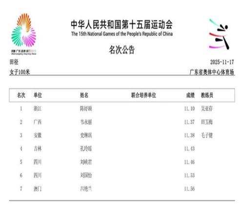 2025年11月21日,第十五届全运会将于深圳落下帷幕。在过去的数日赛程中,女子径赛项目汇集了全国顶尖短跑、中长跑、马拉松和竞走运动员,带来了多场有关速度的巅峰对决。14个纯女子径赛项目的精彩角逐,不仅见证了老将们的坚守,更迎来了超级新星的强势崛起。 本届全运会赛场最大的亮点,莫过于浙江队16岁小将陈妤颉的横空出世。11月17日,她在女子100米决赛中以11秒10的惊人成绩一举夺金,并刷新了该项目的亚洲青年记录。仅仅两天后的19日,陈妤颉在女子200米决赛中再度展现绝对实力,以23秒02的成绩夺冠,创造了该项目近六届全运会最快夺冠成绩,加冕为本届全运会的“双冠王”。 除了短跑赛场的耀眼,中长跑和马拉松项目同样精彩纷呈。11月15日,作为本届赛事首个全运会跨境项目,女子马拉松率先上演激烈角逐。云南名将张德顺展现出强大的统治力,以2小时30分20秒的成绩成功卫冕,成为全运会马拉松女子第一人。而在11月18日的女子5000米决赛中,河南队的梁田田以15分09秒85的个人最好成绩在雨中强势摘金,20日晚又在10000米决赛中以32分23秒40再次夺冠。 随着赛程推进,全运会女子径赛的所有项目已全部结束。我们为大家整理了14项女子径赛的决赛成绩。