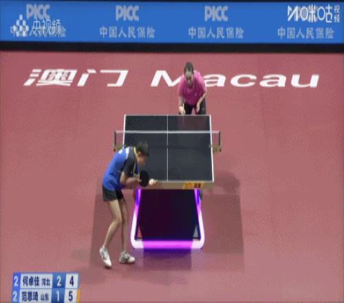 何卓佳没什么秘密,就是铁了心的跟你抗——她这场球的正手发挥甚至在水准之上。在这种反胶对长胶的比赛里,如果双方没有明显的实力差距,长胶这边一般是越打越难的。长胶打法选手的反旋转规律是固定的,如果反胶这边没有特别突出的杀伤力,那只能顶住,尽量变化,靠对手犯错误。 在这种高压力,胜负一线之间的场面里,硬着头皮主动进攻的一方有微弱优势。范思琦的进攻一直比较果断——还打断了何卓佳的颗粒,让她换了个板子。全运会团体决赛,山东队整个战略就是给范思琦创造一个第五场取胜的微小机会,范思琦从零比二的落后的情况下挺过来了——技术可靠,战术合理之外,只能说强韧的心理一点点磨穿的对手的防线。