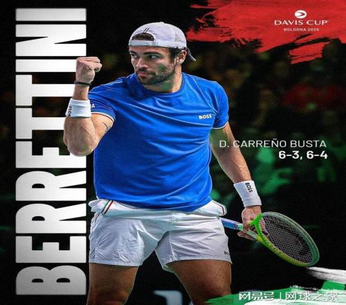 两支队伍都在最关键的时候证明了自己,也让外界迫切想知道,意大利队和西班牙队在决赛争夺冠军,谁能笑到最后。 在这场冠军争夺战未开始前,有网友提了一个相当扎心的问题:意大利队作为去年的卫冕冠军,如果这次在决赛中失利,会不会让辛纳好不容易稍微缓解的压力再次上身,又一次被批评和指责的声音裹挟? 因此,看到贝雷蒂尼出战第一场单打,对阵西班牙队的布斯塔,辛纳的支持者们就频繁隔空向这位意大利帅哥喊话,希望他表现给力些,顺利拿下这场比赛,替后面的队友减压,同时也为好友辛纳缓解可能面临的舆论压力。 贝雷蒂尼让人必须称奇的是,本赛季赛场表现一般,结果到了戴维斯杯表现异常勇猛,继半决赛对阵比利时队建功之后,又将这样的神勇表现延续到了对阵布斯塔这一战,最后以6比3和6比4横扫过关,极大地提振了意大利全队的士气。