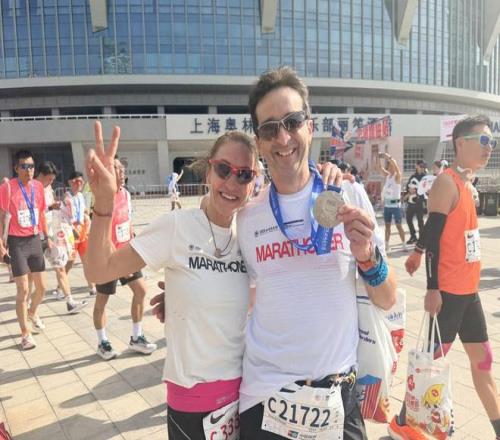 53岁的上海人黄佳已经连续十年征战上马。 每一段故事都和人情味有关 今年是63岁的瑞士跑者林金(音译)第三次来到上海,赛前,他特地去苏州游玩了三天,领略了江南韵味。而首次征战上马的他,原本对于成绩并没有太多追求,但在赛道两旁一声声呐喊助威中,他跑着跑着就燃起了斗志,以3小时37分的成绩刷新了他在中国的最好纪录。 “组织和气氛都无可挑剔,上海永远是最好的。”这位年过六旬的跑者用脚步印证了白金标赛事的魅力。“这样的气氛很难让人不迷上这场比赛,希望明年我还能站上这条赛道。” 与他同样远道而来的澳大利亚跑者尼古拉斯(Bryn Nicholls),此次是带伤作战,赛前,他的左腿带着伤,仍然突破自我完赛,赛后,他难掩激动打了一通越洋电话,和家人报平安,“我做到了!” 接受澎湃新闻(www.thepaper.cn)记者采访时,尼古拉斯坦言,上海是他最喜欢的中国城市,外滩的跑道风光、地道的美食让他直呼“不虚此行”。 杭州跑团的王国园和俞黎梅因跑步而结缘,组成了“跑步搭子”。八年跑龄的王国园,最远站上过阿克苏的跑道,每年十余场赛事的历练,他对跑步的热爱愈发深沉。不过,即便跑过无数风景,此次上马的沿途风景还是让他流连。 而为了减肥开始跑步的俞黎梅,跑着跑着就爱上了跑步。当两人都幸运地抽中这场中签率极低的白金标赛事时,对他们而言,跑步的意义便不是孤军奋战的冲刺,而是途中彼此的陪伴与鼓劲,是感受一座城市的温度与爱。