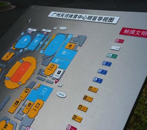 参加本次残特奥的残疾人运动员在白云机场体验了无障碍出行的贴心服务。 本次残特奥会是广州第三次承办大型残疾人运动会,在此前的办赛基础上,这次广州不仅将天河体育中心体育场和广州市残疾人体育运动中心两个场馆打造成目前全国仅有的两个无障碍认证的“三星”体育场馆,更提出了系统构建“零障赛区”的目标。 在天河体育中心,这里无障碍设施的细致程度令人叹为观止:场馆的无障碍导览台除了用盲文标注地标以方便盲人使用之外,还专门使用不同的鲜艳颜色区分不同功能区以方便弱视人群辨认,此外,导览台还设计得更矮,方便轮椅使用者触摸,更细致的是,考虑到广州的气候特征,导览台的盲文还选择了热惰性较高的材料,即使在炎热的夏天,盲文摸上去也不会烫手,方便视障人士感知。