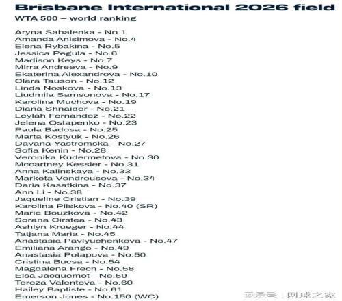 布里斯班赛参赛阵容公布:萨巴梅总领衔!