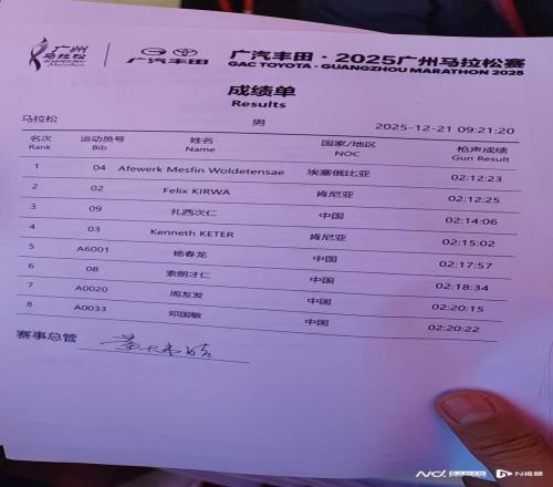 埃塞俄比亚选手包揽2025广马男女冠军,扎西次仁男子第三