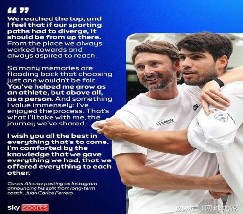 | 世界第一阿尔卡拉斯与其功勋教练费雷罗结束合作引发外界舆论热议。近日一篇来自西班牙人家乡穆尔西亚的报道则揭示了两个人分手更深层次的原因,从矛盾发生到最终爆发,这段师徒情在近三年来就一直摇摇欲坠。