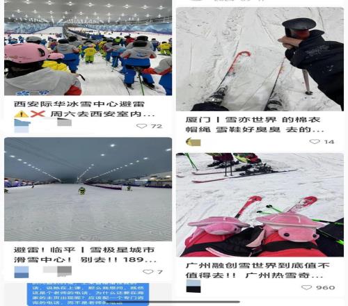 △社交媒体平台上清一色的“避雷”帖。(图/小红书截图) 这个雪季刚刚开始,数量庞大的江浙沪滑雪避雷帖就涌入社交媒体,让人“一滑一个不吱声”。评论区里,北方IP的网友真诚发问:“这个IP,到底为啥要开雪场?”