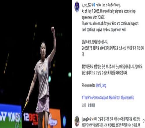 3 韩国体育界的霸凌问题,远非孤立个案,而是深嵌于等级森严的训练体系与“绝对服从”文化中的系统性痼疾。这种强调严格辈分、压制个性表达的环境,往往将暴力与羞辱默认为是锻炼意志的手段。 过去,不断有韩国运动员借助大赛发声,如短道速滑运动员、两届奥运会金牌得主沈淑熙公开指控其前教练多次强奸她……这些响亮的指控,屡屡被全球媒体报道,即便当下依然无法撼动这一僵化体制的根基,但每次掀桌,都推动着韩国体育界的自省与改变。 今年年初,韩国羽协正式开放运动员个人赞助权益,安洗莹选择与尤尼克斯签约。据韩国媒体透露,这份合同总价值达100亿韩元(约合人民币5300万元),合同期限为4年,刷新了全球羽毛球运动员的赞助纪录。此外,韩国羽毛球运动员徐承宰、金元昊也与尤尼克斯签订了赞助合约,部分选手则签约了威克多。