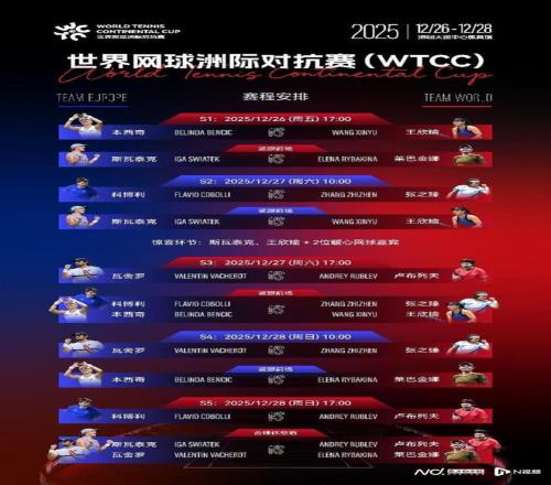 | 南都讯 记者汪雅云 12月26日,2025世界网球洲际对抗赛(WTCC)在深圳大运中心体育馆开幕。两位大满贯冠军斯瓦泰克、莱巴金娜领衔,中国网球明星王欣瑜、张之臻,以及卢布列夫、本西奇、科博利、瓦舍罗一众网坛实力悍将齐聚深圳。第一阶段的比赛中,斯瓦泰克领衔的欧洲队拔得头筹,以2比0暂时领先世界队。