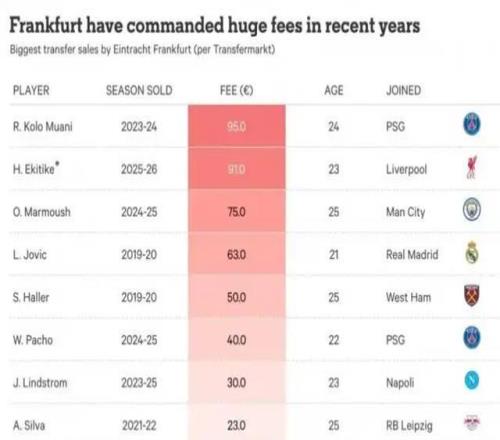 从安德烈-席尔瓦、约维奇、阿莱、穆阿尼到埃基蒂克,要说当今德甲联赛最厉害的神锋摇篮,莫过于法兰克福了。 效力法兰克福时大杀四方,去到其它球队却瞬间哑火,仿佛没给使用说明书,法兰克福逐渐被球迷调侃为德甲黑店。 即便如此也不得不佩服,他们的确有着能令自家前锋踢出顶级表现的神奇方法!