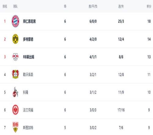 德甲最新积分战报:拜仁创历史,多特丢分,勒沃库森连胜