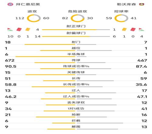 拜仁完胜药厂!4射正进3球效率极高,控球率近六成