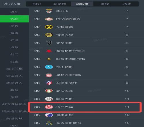 在德甲赛场,法兰克福9轮联赛失球19粒,是本赛季德甲失球第二多的俱乐部,奥格斯堡以21粒失球为德甲目前失球最多的俱乐部。