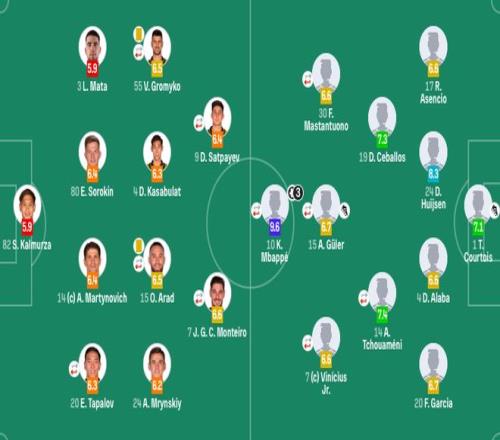 替补未出场:13-卢宁、29-纳瓦罗、8-巴尔韦德、9-恩德里克、18-卡雷拉斯、35-希门尼斯