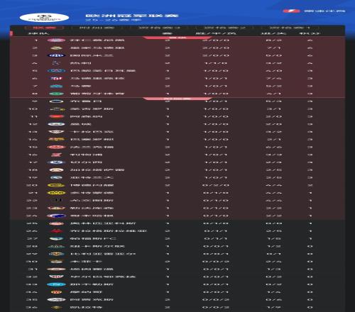 欧冠第2轮首日后积分榜:拜仁领跑,利物浦输球后降至第16