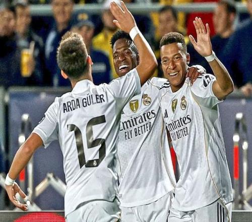 阿隆索执教的皇马,在西甲9场拿到24分,领先死敌巴萨2分,排在第1位;在欧冠,皇马2-1击败马赛,5-0大胜阿拉木图凯拉特,开局2连胜。最近各项赛事3场比赛,皇马收获全胜。本场欧冠大战,皇马期待迎来欧冠3连胜,继续占据直通16强的有利位置。 【预计首发】 皇马(433):库尔图瓦/巴尔韦德、赫伊森、米利唐、卡雷拉斯/居勒尔、琼阿梅尼、贝林厄姆/马斯坦托诺、姆巴佩、维尼修斯 尤文(3412):迪格雷戈里奥/鲁加尼、凯利、加蒂/坎比亚索、库普梅纳斯、洛卡特利、卡卢卢/小孔塞桑/戴维、伊尔迪兹 |