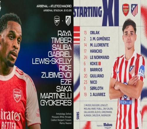 阿森纳 4-0 马德里竞技 作为当前领跑英超的球队,阿森纳近期状态火热,上次输球已是8月了,马竞此前位列西甲第4,虽说与皇萨产生积分距离,但实际上也只输过1轮比赛。 此战双方尽可能派上了全主力,哲凯赖什、萨卡、埃泽和马丁内利组成阿森纳进攻群。瑟洛特和阿尔瓦雷斯搭档马竞双前锋,两侧是冈萨雷斯和朱利亚诺-西蒙尼。