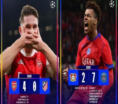 欧冠1夜9场轰43球!阿森纳13分钟40碾压马竞!大巴黎72狂胜药厂