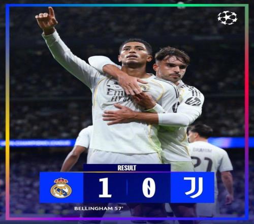 皇家马德里1-0尤文图斯 比赛进行到第57分钟,维尼修斯在禁区左路连续闪转腾挪后晃开角度起脚劲射,皮球击中远端立柱弹出,贝林厄姆跟上补射破门,皇马在场上1-0取得领先。1-0的比分保持到了终场,尤文图斯遭遇各项赛事7场不胜。