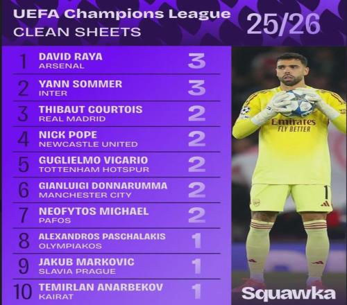 Squawka统计,拉亚和索默尔在本赛季欧冠比赛中3场比赛全部完成零封,阿森纳和国米门将也是仅有的本赛季欧冠尚未失球的门将。 两支球队的防守确实都很好,但如果来次正面对话,我认为还是阿森纳赢面大,而且国米在联赛里丢球可不少…… 拉亚本身确实是一名出色的门将,本赛季甚至可能升级为冠军门将,但阿森纳整条后防线或者说整体才是零封的关键,防守是从锋线开始的。