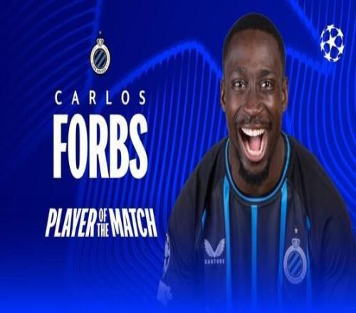 | 欧冠联赛阶段第四轮,布鲁日主场3-3战平巴塞罗那,此役贡献2球1助的布鲁日前锋卡洛斯-福布斯当选欧冠官方全场最佳球员。