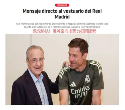 欧冠对阵奥林匹亚科斯的赛前新闻发布会上,阿隆索透露:“我和弗洛伦蒂诺、总经理何塞-安赫尔都聊过,我们每天都保持交流联系。我相信一切都很好,而且会越来越好,无论是成绩、关系。我们都有不满意的地方,但改进需要时间。” 《阿斯报》指出,阿隆索的这番话,其实是对自己未来的“盖章”——他得到了弗洛伦蒂诺的支持。78岁的佛爷是皇马掌舵者,只要得到佛爷支持,阿隆索帅位无忧,任何球员都不可能做掉龙哥。