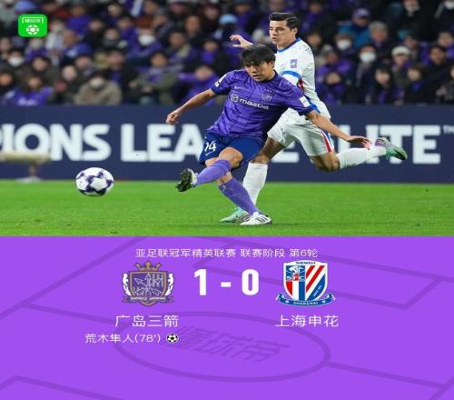 北京时间12月10日亚足联冠军精英联赛联赛阶段第6轮,广岛三箭对阵上海申花。上半场,安德烈-路易斯错失良机,随后中柱,下半场,荒木隼人头球破门。最终比分广岛三箭1-0战胜上海申花。 关键事件 第78分钟,荒木隼人利用角球头球破门,申花客场0-1落后广岛三箭