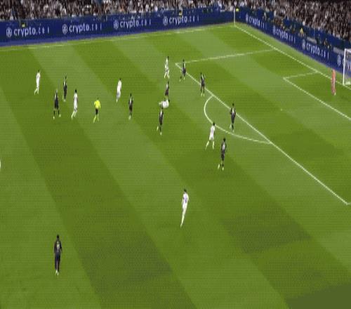第50分钟,维尼修斯传中,罗德里戈假射真传,贝林厄姆的挑射,稍稍高出。