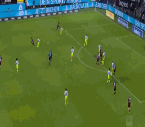 第72分钟,迅速扳平比分,埃布努塔利布单刀破门,法兰克福2-2