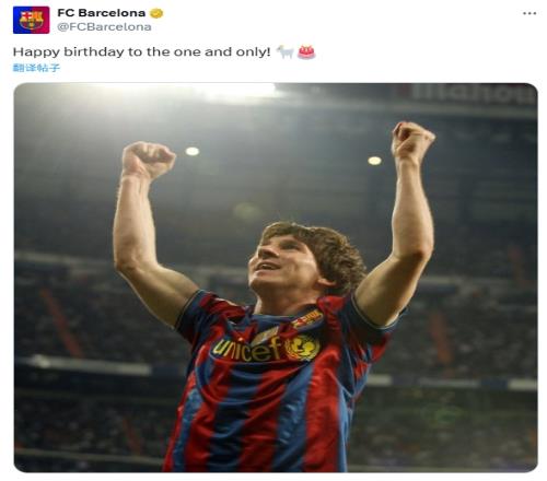 今天是梅西38岁的生日,巴萨官推送祝福:“祝唯一的你生日快乐!