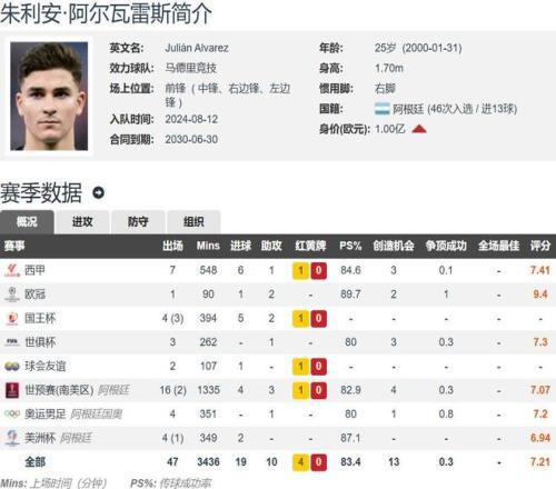 阿尔瓦雷斯1周3赛6球2助身价1亿欧还要涨曼城7500万欧卖太亏