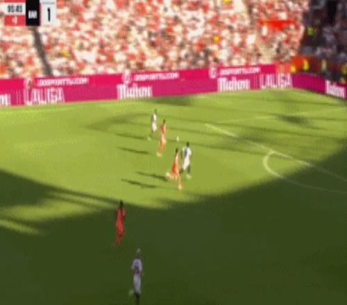 第89分钟,塞维利亚快速反击,卡尔莫纳突入禁区右脚低射破门,3比1!