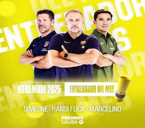 | 官方消息,西甲11月最佳主教练候选名单公布,分别是弗里克、西蒙尼和马塞利诺。