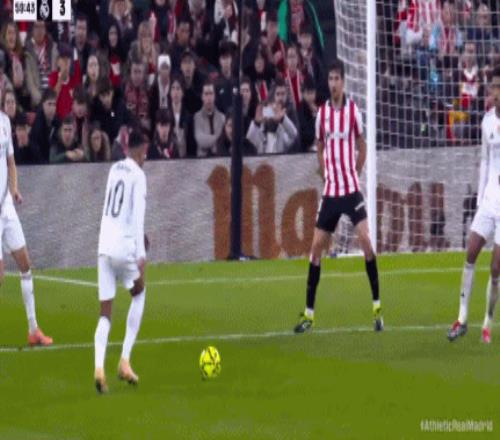 第13分钟,皇马后场失误,毕尔巴鄂竞技断球反击,N威廉姆斯断球往前推进后兜传门前,古鲁泽塔点球点处抢点凌空扫射踢飞了。第17分钟,皇马左路快攻,姆巴佩送出精妙直塞,维尼修斯插上突入禁区获得小角度半单刀良机,只是他没有射门,想着横传做饼,被回防球员将球挡出底线。第25分钟,毕尔巴鄂竞技4分钟内两次左侧制造杀机,古鲁泽塔和贝伦格尔都获得超近距离良机,只不过他们的大力推射都被库尔图瓦奋勇扑出。 姆巴佩追平自己的偶像C罗保持的纪录!