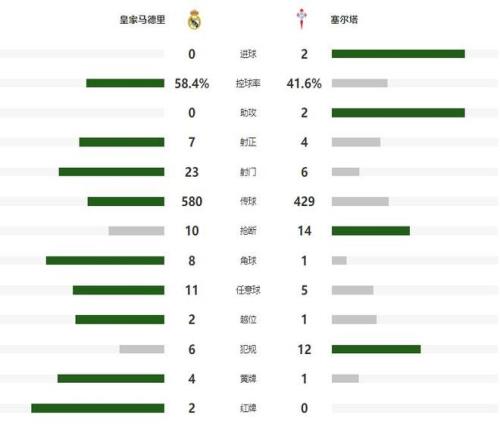 其实,仅通过比赛的集锦和数据统计对比,你就能够看出其中的端倪。皇马坐镇主场不仅没有制造出太多极佳机会错失了大把的射门契机,反倒是被塞尔塔的反击一打一个准,对方7脚射门却有5次射正,且制造了2次进球的,非常高效率。而整体上皇马的后防表现仍旧是漏洞百出,这也是白衣军团在主场失球、及近两个赛季发挥不佳的关键问题。