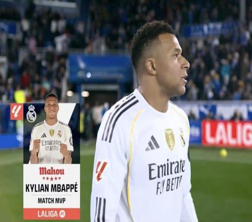| 西甲第16轮,皇家马德里客场2-1击败阿拉维斯,此役为皇马首开记录的姆巴佩当选西甲官方全场最佳球员。