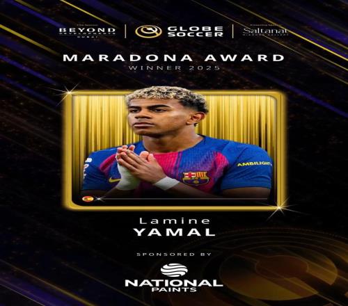 | 官方消息,巴塞罗那当家新星亚马尔荣获环球足球奖2025年马拉多纳奖。