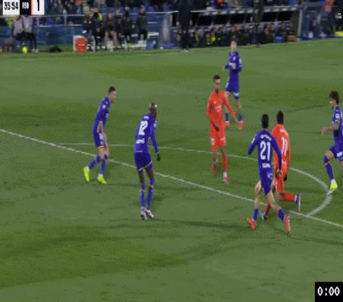 第89分钟,赫塔菲获得获得中线处任意球机会,米拉操刀主罚大力往禁区里吊过去,阿兰巴里禁区弧顶处扛住防守头球摆渡一蹭,胡安米小禁区抢点凌空扫射得手,赫塔菲1:1扳平比分。赫塔菲球员在开心的庆祝“绝平”,然而补时6分钟最后30分钟,他们却遭到重击,皇家社会右侧角球机会,久保建英操刀主罚兜传后点,门将索里亚出击失误没有击打到球,阿兰布鲁后点抢点甩头攻门,皮球击地后弹入网窝,皇家社会2:1压哨绝杀赫塔菲。