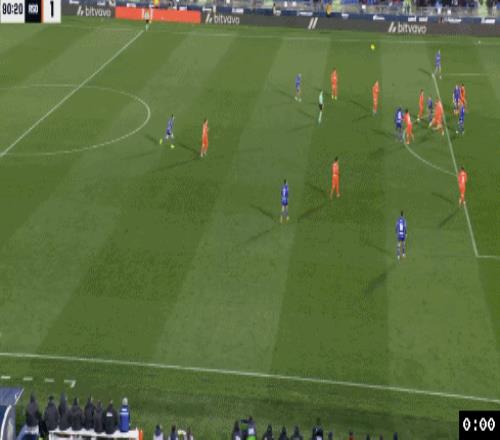 赫塔菲本赛季初表现不错,只不过近2个月他们表现低迷,近7轮1胜1平5负,今天比赛之前已经是4轮不胜。开场后两队展开对攻,第14分钟,赫塔菲右路快速反击,费梅尼亚斯突破下底传中,梅斯坦萨禁区抢点头槌攻门顶偏了。第35分钟,皇家社会左路快攻,奥亚萨瓦尔带球推进到禁区角上往禁区内斜塞,伊格莱西亚斯回防解围失误,将球挡到了门德斯跟前,门德斯禁区内一步迎球左脚大力扫射,皮球直入球门近端死角,皇家社会1:0首开纪录。