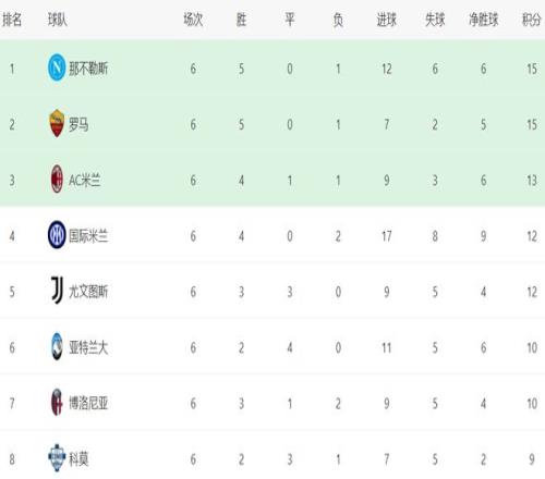 意甲第6轮进行了多场比赛。博洛尼亚在主场大获全胜,以4-0横扫比萨。坎比亚吉在第24分钟帮助博洛尼亚首开纪录。之后图雷被罚下,让比萨少踢1人。这让博洛尼亚踢得更加从容。之后莫罗、奥尔索里尼和延斯-厄德高相继进球,彻底踢爆比萨。比萨一胜难求,本赛季6场联赛2平4负。 罗马在客场完成逆袭,以2-1击败了佛罗伦萨。比赛第13分钟,佛罗伦萨就取得了进球。基恩在禁区外轰出一脚世界波,非常炸裂。但很快罗马就扳平比分。苏莱也通过远射的方式取得进球!第30分钟,克里斯坦特头球顶进,帮助罗马反超比分。之后的比赛双方再没有出现进球。罗马笑到了最后,拿到了来之不易的3分。 那不勒斯也是逆袭拿下比赛。那不勒斯此役面对的是一胜难求的热那亚。那不勒斯率先丢球。埃哈托尔脚后跟射门打进。直到第57分钟,那不勒斯才扳平比分。安古伊萨头球顶进。第75分钟,霍伊伦站了出来,他补射破门,完成致命一击,帮助那不勒斯2-1拿下比赛。 两大强队尤文图斯和AC米兰丢分了,他们之间的对决踢成了沉闷的0-0!这场比赛AC米兰获得绝佳点球机会,结果普利希奇罚丢了,直接踢飞,真是难以置信。AC米兰浪费了全场最好的机会。双方总共25次射门,结果连1粒进球都没有,真是奇葩。尤文图斯各项赛事遭遇5连平,太无奈了。 在积分榜,榜首易主了。那不勒斯5胜1负,拿到15分,排名榜首。罗马的战绩和那不勒斯一样,也是15分,但净胜球少,只能排名第2。AC米兰以13分排名第3。国际米兰12分,排名第4。尤文图斯也是12分,净胜球太少,排名第5。亚特兰大和博洛尼亚都是10个积分。 |