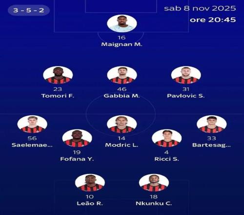 | 米兰圈 北京时间11月9日凌晨3点45分,意甲第11轮,米兰将在客场对阵帕尔马。据迪马济奥报道,普利西奇可以参加周末的意甲联赛,但他还没有恢复到100%的状态,因此会先在替补席待命。 拉比奥特和希门尼斯继续单独训练,两人将缺席本轮联赛,其中拉比奥特的身体情况略好于希门尼斯。在本轮意甲联赛,阿莱格里将大体沿用上一轮的米兰首发阵容,只有托莫里将取代德温特首发。 下面是意大利天空体育给出的预测首发: