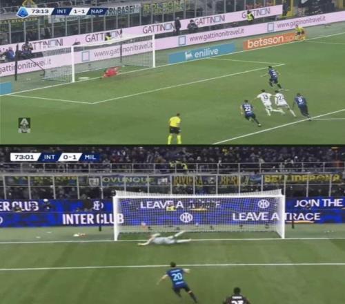 据统计,巧合的是,恰尔汗奥卢上一次罚丢点球与这一次罚丢点球都是在意甲第12轮第74分钟,上赛季意甲第12轮国米主场对阵那不勒斯的比赛中,恰尔汗奥卢同样在北看台下方的球门罚丢点球。 恰尔汗奥卢在国际米兰生涯共计主罚29个点球,他仅仅罚丢了两个,但这两个罚丢点球的方式却完全一模一样。