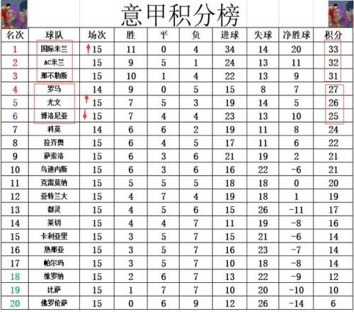 北京时间12月15日凌晨,2025-26赛季意甲联赛第15轮再赛5场。经过一番鏖战,尤文客场1:0击败博洛尼亚,AC米兰主场2:2战平萨索洛,国米客场2:1小胜热那亚,乌迪内斯主场1:0战胜那不勒斯,维罗纳客场2:1绝杀佛罗伦萨。