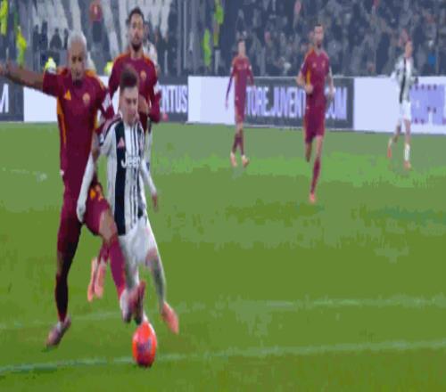 第12分钟,迪巴拉射门,皮球击中尤文球员折射后被门将没收