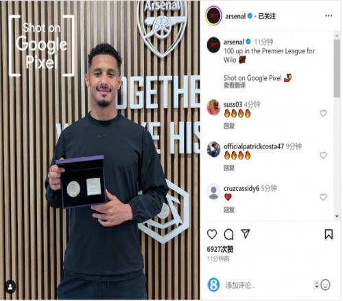 萨利巴领取英超百场里程碑纪念品,阿森纳社媒晒照祝贺