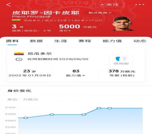 直播吧08月30日讯 名记罗马诺“Here we go!”确认,阿森纳将签下勒沃库森后卫因卡皮耶。 罗马诺表示:因卡皮耶加盟阿森纳,Here we go!阿森纳与勒沃库森已经达成协议。因卡皮耶转会费为5200万欧元,带有转售条款。球员即将体检。 因卡皮耶上赛季代表勒沃库森出战45场比赛,贡献3粒进球和2次助攻,目前德转身价为5000万欧元。