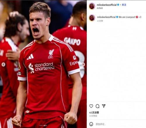 谁说我是水货科尔克兹社媒晒怒吼照:我们是利物浦!再添三分