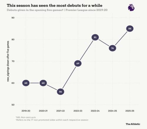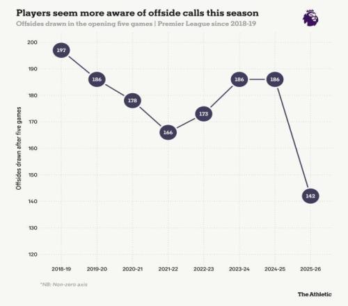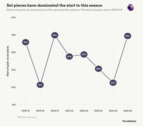 体坛周报全媒体报道 英超开季5轮,权威媒体竞技网总结了现阶段的一些趋势和现象。明显的一条是,本季定位球重要性大幅提升,迄今35%的进球来自定位球(包括点球),而上季同期只有21%。22个角球进球是3年来新高。164个进攻三区界外球直接大力抛进禁区,更是惊人提升:2018-19赛季以来,这是同期这一数值首次达到三位数。 近年英超前5轮定位球进球占比。 值得注意的是,本季有若干重要球队,包括利物浦、阿森纳、切尔西、纽卡斯尔联和曼联,在进攻线进行了大幅重组,而且很多球员是赛季开打后才加盟。近期比赛,这几支球队的进攻都还不够流畅,明显还在磨合期。排除3支升班马,英超其他17支球队在前5轮共有85名球员上演处子秀,创7年来最高值。这体现了英超今夏引援力度,也预示各队可能随着赛季进行才会打出更好的水平。 近年英超前5轮首秀球员数量。 另一个细节是,在半自动越位判定系统引入英超已5个月的情况下,球员们似乎对越位有了更高警惕,本季越位总数对比此前几年显著下跌,只有142次,此前几年多在170-200之间。此中另一成因或许是各队主动或被动减少了直塞球。本季迄今整个英超只有59次成功直塞,也就是平均一场才1.18次,这是2021-22赛季以来的同期最低值。 近年英超前5轮越位次数。 |