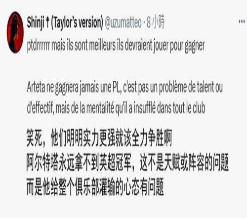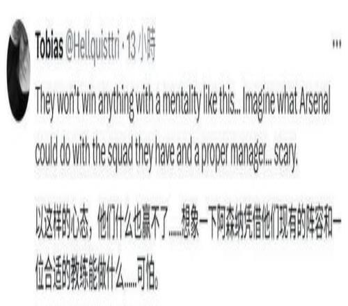 塔帅言论遭群嘲:疯了吧,枪手庆祝平局这样的心态什么也赢不了