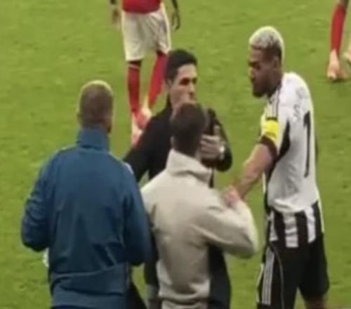 | 雷速体育9月29日讯 在本轮英超比赛中,阿森纳凭借加布里埃尔在第96分钟的头球绝杀,2比1逆转战胜纽卡斯尔。然而,终场哨响后,场上火药味并未消散。 据英媒报道,纽卡斯尔中场乔林顿赛后与一名阿森纳教练组成员发生冲突,并有推搡动作。阿森纳主帅阿尔特塔迅速上前,将助理教练拉开,避免事态进一步升级。 随后,乔林顿转身离开,并参与了谢场。 |
